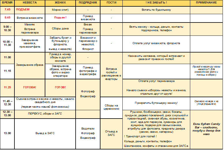 ТАЙМИНГОМ свадебного дня