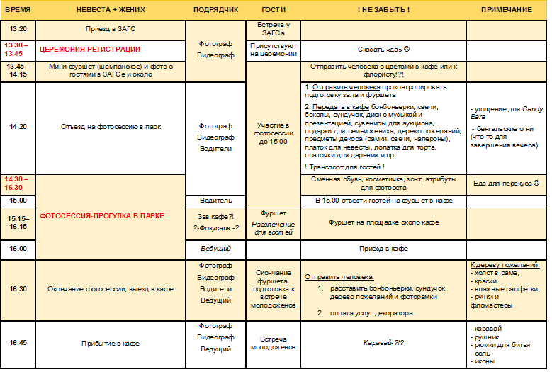 Комментарий к файлу: Тайминг свадебного дня - 1 часть
