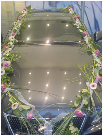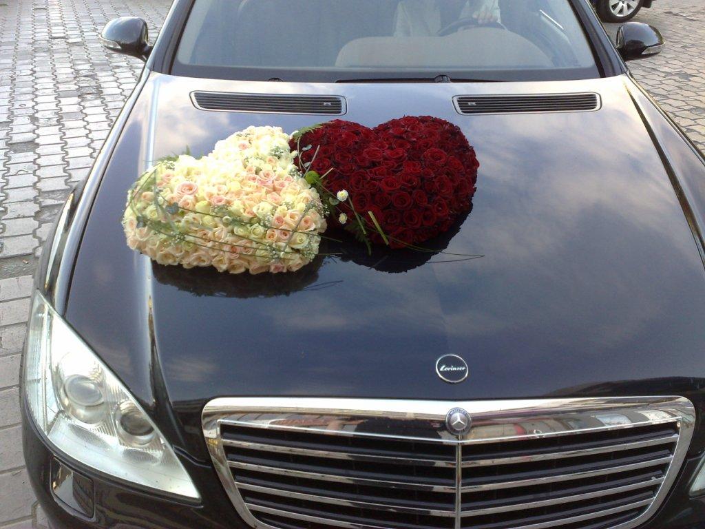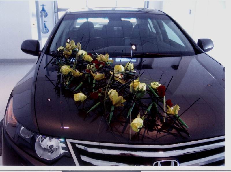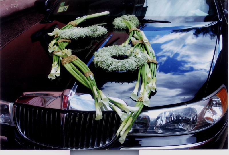 вот есть фото украшения на авто. Да из живых цветов смотриться красиво но дорого.