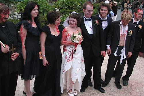 очень сложная тема - зомби. тут если образы перегрузить - получится бомжи грязные и безкусно может все получится. а так, чтобы красиво, стилько и стебно получилось - это оч кропотливо все продумывать надо.