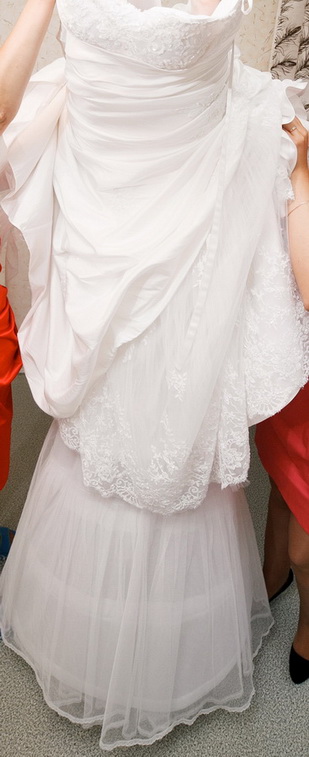 Кстати, Леля правильно написала, в дамскую комноту я ходила без посторонней помощи, поэтому я считаю что подъюбник на одно-два кольца само то и смотриться красиво и в ногах платье не путается. И лучше всего чтобы поверх была нашита ткань, чтобы кольца не проступали через платье. У меня хоть ткань на платье и плотноватая была, но когда меряла подъюбник подруги обычный кольца видны были сильно.