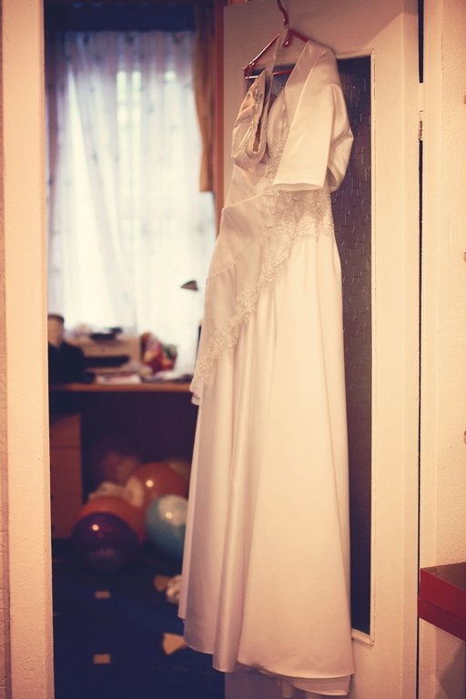 И так, вся прогулка. Это при том, что когда мы подписывали договор, то Саша Зеленко утверждал, что отдает фото без дублей, без закрытых глаз и размазанные удаляет (т.е. весь брак чистит), а по количеству озвучивал цифру в 300-400 фотографий. И, поверьте, нас бы это устроило, если бы они были такие, что можно было показать гостям, не перелистывая кучи лишнего. 2. О тех фото, которые очень разочаровали…1) Каждая невеста мечтает о волшебном фото платья… У меня такого уже никогда не будет. То, что сфоткал фотограф… мягко говоря похоже на тряпку. На платье было очень красивое серебристое кружево… Да и вся структура платья на этом фото спрятана… При том, что кто-то из гостей (свидетельница сказала, что она) предлагал помочь повесить платье… Вложение: