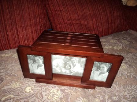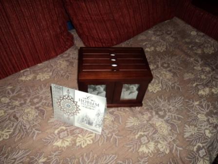 Девочки, я получила в подарок настоящее новогоднее чудо!!!!  Лучшего подарка невозможно было для меня придумать!!!!! Юлечка, спасибо!!!!!!!!!!! Ты прочто умничка!!  Спасибо за тёплое письмо, за чудестную открытку и за ОФИГИТЕЛЬНЫЙ ПОДАРОЧЕК!!!!! Но! По-порядку)) Всё было как в детстве:  папа разбудил меня и сказал: "Танцуй, я принёс тебе посылку от Деда Мороза!" Надо было видеть выражение лиц всех моих домашних, когда я с огромной коробкой танцевала посреди комнаты! Я разорвала упаковку - там коробка))) А в коробке - непонятная штучка)))))  Деревянный ящичек, вокруг которого я на прошлых выходных ходила в Короне, очень хотела купить, но пожалела) И вот Я ЕГО ПОЛУЧИЛА!!!!!  Это фотобокс!! Он так подходит к мебели в новую квартиру! Спасибо, Дедушка Мороз - Юленька! ты вернула меня в детство, подарила ощущение Нового года и праздника и на 100500% угадала с подарком!!! Подарок мне ТАК понравился, что спасибо летит к тебе по почте)) Жди!