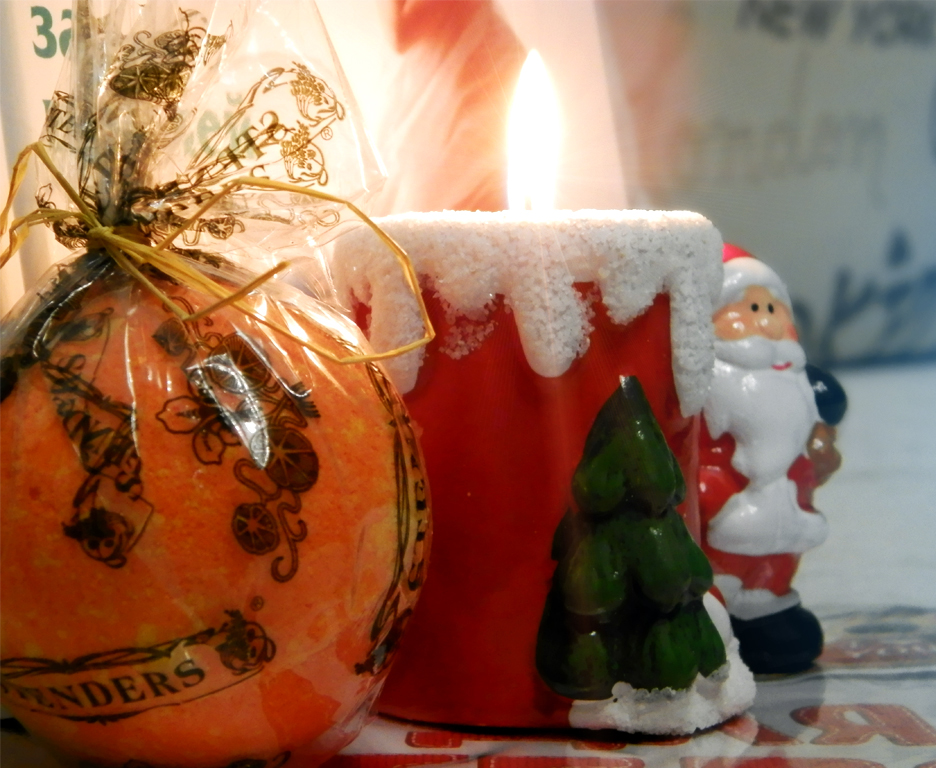 И так огромное спасибо моей снегурочке Mutluim, мало того что догадалась кому дарит заранее, так и выбрала всё очень гармонично и по делу =D> мне всё очень понравилось :smilel: есть в подарочке и новогоднее и полезное для меня в том числе, книжечек у меня таких настольных дома еще не было...лажу всё по нету,а тут можно и почитать интересующие меня вещи :) открытка просто суперрр,очень нравится,поставлю на видное место и может и под ёлочкой так же как и свечечку с дедом морозом,мы ее даже зажгли чтоб на фото все полюбовались как красиво :P а шарик для ванной очень вкуснява пахнет,думаю испробую его перед НГ :mrgreen:
