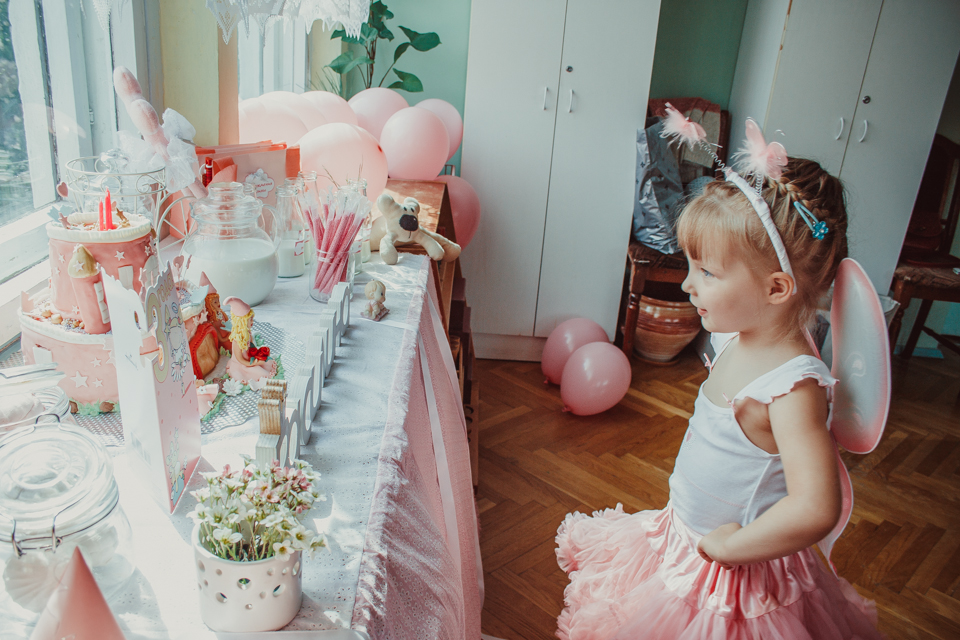 моя дочка, как и многие очень любит платья, принцесс и фей, поэтому в прошлом году, ей исполнилось 3 года, по ее просьбе, я делала в стиле розовой феи) был десерт на палочках ввиде волшебных звездочек, торт с феями, колпачки для девочек и мальчиков, крылья и ,конечно, приходила в гости главная фея
