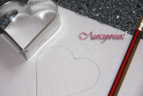 На листе картона нарисуйте сердечко желаемого размера, можете воспользоваться имеющейся формочкой для печенья.