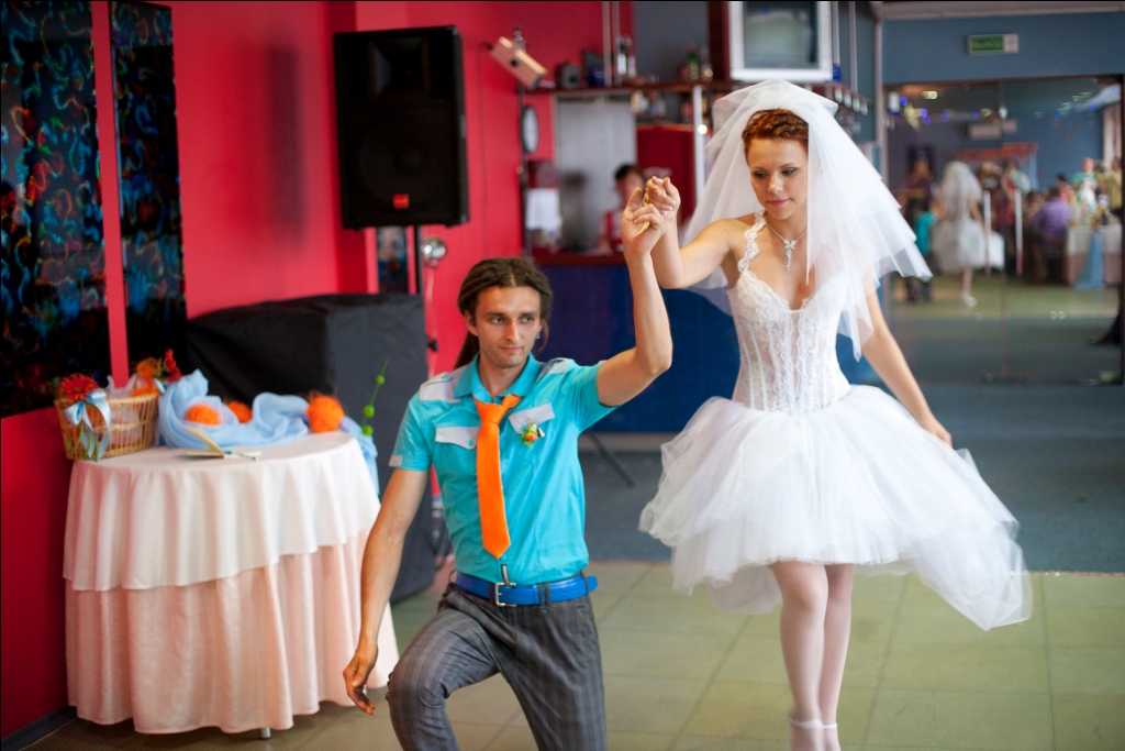 вот он - танец наш!!! :dan: стали по местам, звучит музыка...Паша вышел, я потом..иду, смотрю на него и слезы на глазах!!!!!! :roll: первое па! и до меня доходит: я рано вышла!! стоим, смотрим друг на друга, меня пробирает на ржач :roll: музыка пошла дальше, мы крутимся, а я ору шепотом Паше на ухо, что танец-то я забыла!!! :roll: он на меня вытаращился, делать-то что?! все это происходит в считаные секунды!!а потом оно как-то все собой получилось :mrgreen: мы отплясали на славу) я не видела лиц, не знала, что я делаю, краем глаза заметила, что Паша сбился разок, но мы все равно пляшем!! :dan: пляшем так, что у Паши отвалилась бутоньерка :mrgreen: