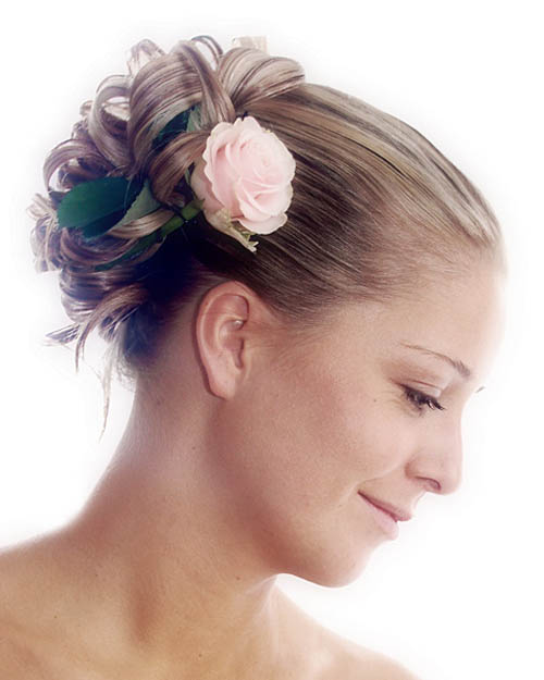 Вообще, на свадьбе цветов три - бордовый, кремовый, золотой. Поэтому в прическу пойдут кремовые и бордовые розочки, а букет будет приблизительно такой: