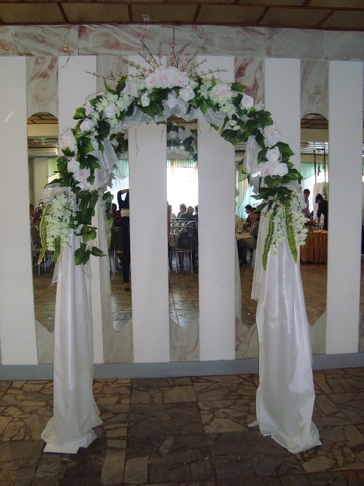 Девочки, может кому то будет интересно. Свекровь делала нам на свадьбу украшение зала сама. Вот к примеру Арка: