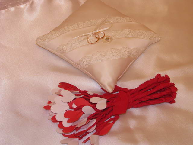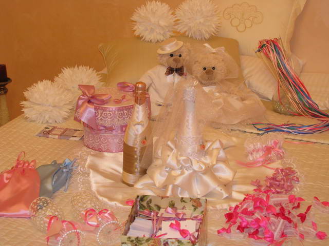 Таняя корзнка и сердечко для карточек- не вопрос!))) что там с усами и губами? Созвонись с Аней- Love is. А по бутылкам, если хочешь, неси мне ленты! Сделаю!!! О!!! Кстати! Бутылки у нас ушли за 700 000! Но я хотела дороже! Уж больно намучилась и хотела оставить себе!!! Это мои слезы и гордость! С ними я провела дня два. )))