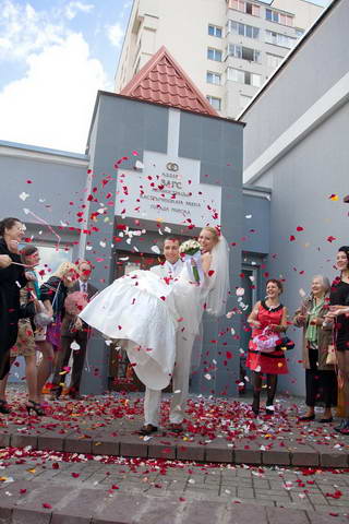 Комментарий к файлу: жених и невестушка))) все лепестки перед ЗАГСом -НАШИ!!! Как-будто коврик из лепестков рассыпали гости!)))