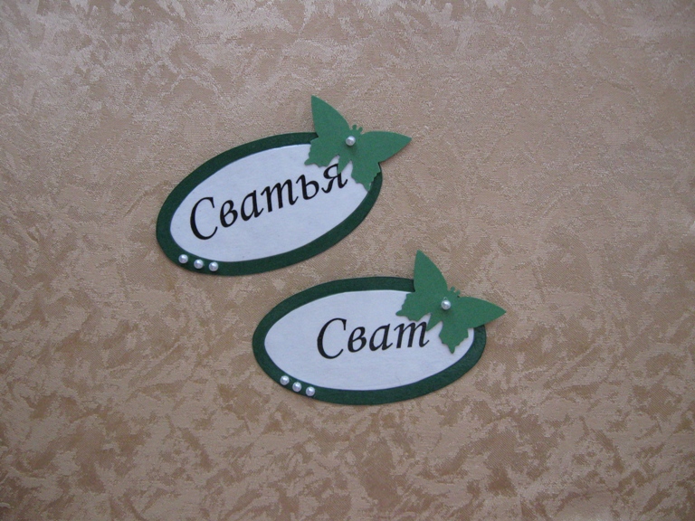 Девочки, спасибо вам большое. Сейчас не могу уделять достаточно времени форуму, т.к. ничего не успеваю. Решила, что нервничать и переживать по этому поводу не буду  Что успеется, то успеется. На выходных успели: - сделать обозначения столов (они будут на шпажках, которые воткнем в зеленое яблоко... яблоко будет выполнять роль подставки); - сделала таблички для сватов; - сделала табличку для фотоприбамбасов; - сшила фату; - сшила салфетки; - почти дошила скатерти; - модернизировала нижнюю юбку, теперь платье не придется подгибать; - пологнула брюки жениху; - составить плей-лист; - дозакупились спиртным - итого теперь у нас на 50 человек 66 бутылок вина, 29 бутылок шампанского, 60 бутылок водки. Надеемся, что хватит  ; - купили соки-воды: 80 л. сока, 60 л. минералки и простой воды, 35 л. газировки; - закупились кофеями, чаями, сладостями.