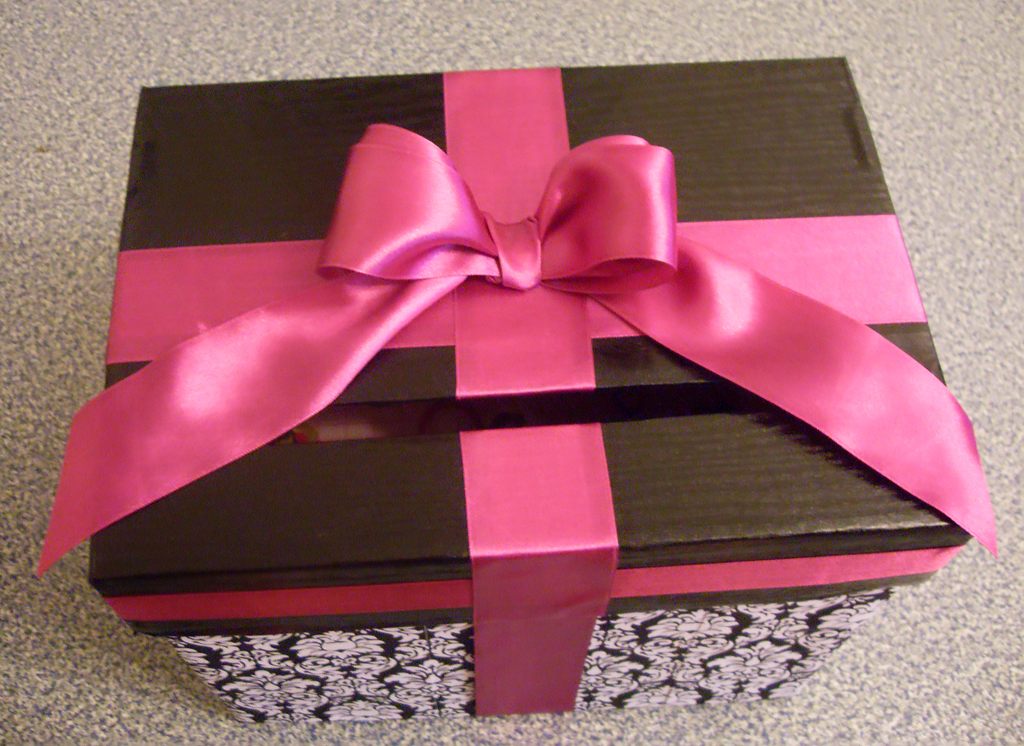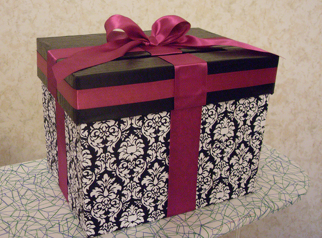 Из новостей. Наконец-то закончили с БМчиком сундук для дарения. Хотя у нас скорее получился не сундук, а коробка в виде одного большого подарка, в который гости будут бросать свои подарки поменьше.
