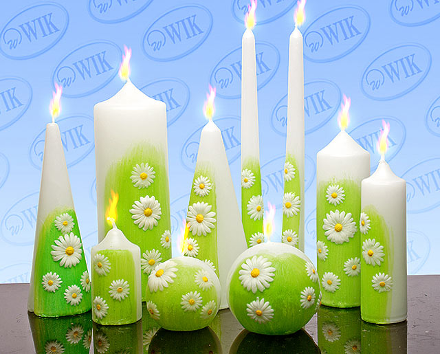 dolb9sha, какие приглосики чудесные!!!! ооооооох, они в миг поднимают настроение!!! свечи, какие же они классные, идеально тебе подходят!!! а если самой попробовать сделать такие? я знаю, что цвет свече можно придать с помощью салфетки, и ромашки наклеить... это я на всякий случай, если не получится с поставщиком! А насчет белья не переживай, я вообще забыла про халат, вспомнила только утром в день свадьбы  твой будет твоим, найдется красивущий я уверена!