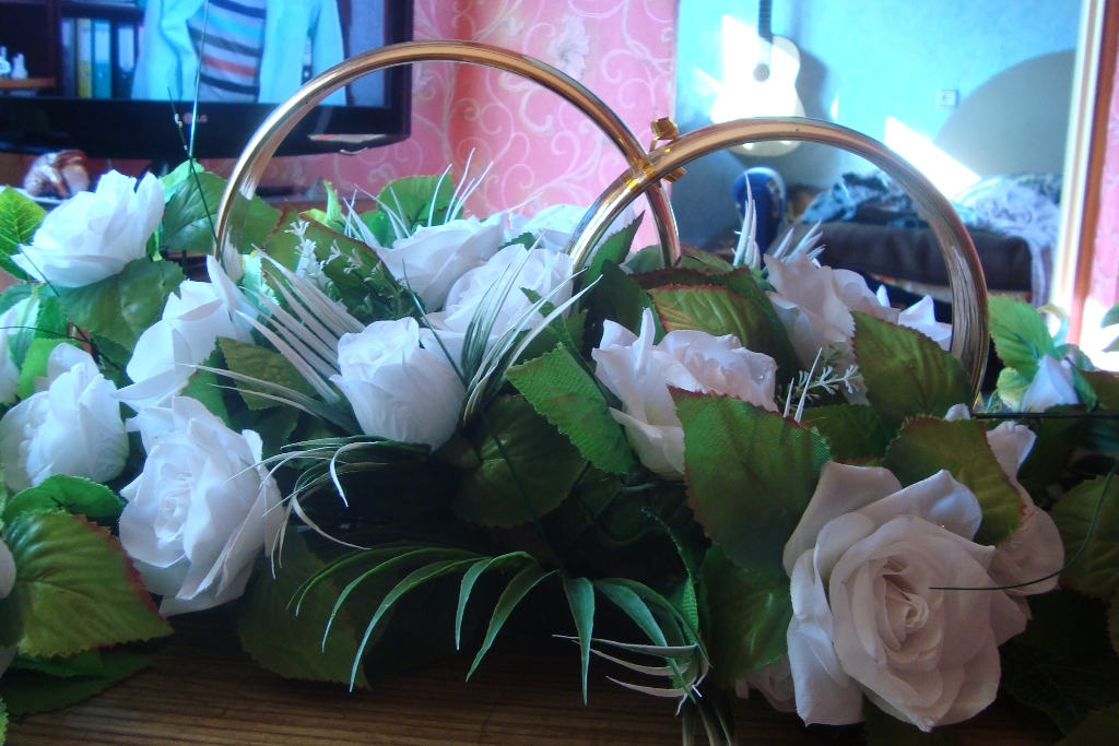 Приветики девченочки!!!! Давно не появлялась, всё времени нет. В связи с кризисом, директор работой загрузил по самое "не хочу"  ....Почти 2 недели сидела на работе с 8 до 19 --- 19.30....Ужас!!!!!!!! А главное то, что за это ни заплатят, ни отгулы не дадут Короче, рассказываю что за это время произошло: БМка купил бокальчики (правда, я хотела обыкновенные украсить, но пришлось уступить), украшение на шампанское, кольца на машину + ленту с розами + розочки на ручки... Я купила всякие мелочи на выкуп (сердечки, ромашки и т.д.) Ну, вроде все вспомнила...А, может, и нет...Короче, завтра фоточки выложу... Да, кстати, завтра собираемся идти кольца заказывать...И, если все получится - в ЗАГС  ... Объясню сразу, почему до сих пор не дошли - у нас ЗАГС работает с 8-17...И только во вторник до 20-00 (это единственный день, когда могу я)... А БМка у меня водитель - международник, и рассчитать так, чтобы во вторник он был тут, именно после обеда - проблематично...Но,мы не расстраиваемя!!!!В крайнем случае, отпрошусь, когда с завалами на работе разберусь)
