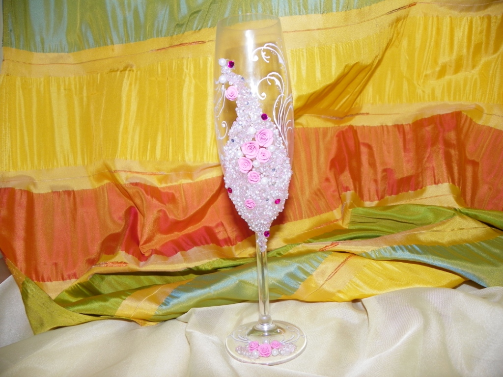 Fishka ,бокалы у меня дома были, поэтому на них я не тратилась! Полимерная глина (из неё сделаны розочки) - 24 тыс. бисер (2 шт. - розовый и белый) - 1600 шт. бусенки и стразы у меня были, но по цене ещё где-то 5 тысяч! узор рисовала простым лаком для ногтей.