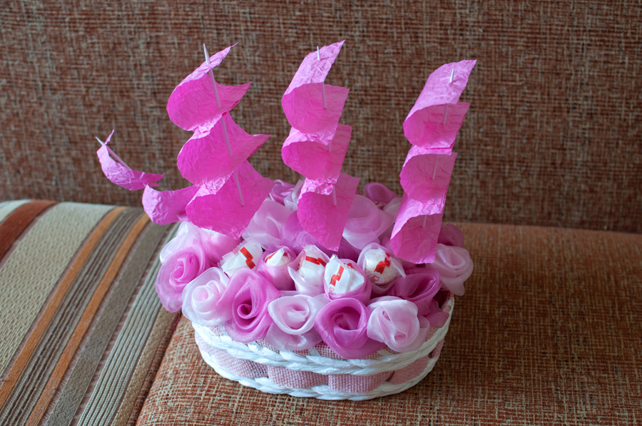 Вчера сделала набег на Немигу, точнее Пассаж, закупилась лентами для бонбонок. Пришла домой прикинула. как получается, мне понравилось. Тока лошара я, все таки мало купила. Посчитала на 40 бонбонок, а надо сделать 46 (я хочу тем гостям. у которых дети, но с собой малышей не берут, передать и для них тоже бонбончики). И вчера почти дорезала каркасы для бонбонок, остался последний рывок (постараюсь сегодня) и буду уже склеивать и оформлять:)