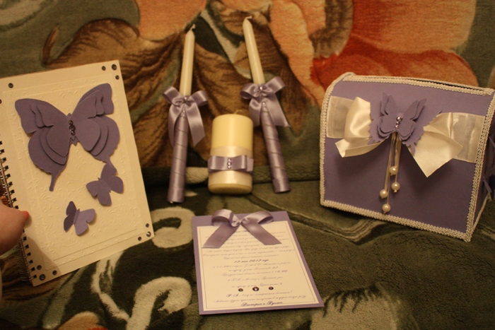 Выкладываю свой хэнд мэйд за последние дня 3-4 Отмучалась с этими нифига не приклеивающимися свечками, но все же. Может и не шикарно, но более менее. Вместо ползунков у нас сберкнижка, с идеей помог Иван) Ну и все аксессуары вместе!))) Жаль, фотография не передает блеск стразов, в них весь изюм, сверкают красиво. даже не знаю, делать ли браслетики подружкам...и из чего.... Надо еще брошки свидетелям сообразить. Сватам (крестным) нужно их делать?