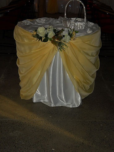 Вот типа этого,только ширма с подсветкой и стулья с бело-желтыми бантами)
