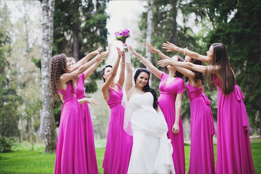 3. Заказали платья-трансформеры подружкам. По цвету - фуксия. Вот тоже сомневаюсь на счет цвета. Изначально хотели бледно розовые, потом посмотрели - в этой модели бледно-розовый нам показался очень унылым, решили фуксия, сейчас думаю, может зря...