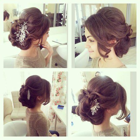 Дело двигается. Смотрела я смотрела, как девушки активно выбирают варианты мейка и причесок и вздыхала, когда же смогу наконец встретиться со своей Натальей...Ура-ура, она вернулась с отпуска и мне наконец удалось в ней пробиться! Сначала записалась на субботу, но сегодня она мне позвонила и обрадовала: есть свободное время на завтра, на 7 вечера. ИИиииииихуууууууу, завтра после работы лечу к ней!!! Но не все так просто) Вроде у меня естть намеки того, что мне бы хотелось видеть в отражении зеркала утром 14 июня, но 100% конкретного образа, увы, нет  Так что завтра предстоит долгая и тщательная консультация по поводу моего образа) Сегодня во время обеда составила список вопросов, которые хотела бы с ней обсудить: 1. Прическа. Какая она будет:более небрежная или плотная, ее объем,стоит ли выпускать локоны. Хочу однозначно собранную. 2. Нужна ли заколка. Мне очень понравились варианты причесок с заколкой-гребнем. Хотя изначально категорически отметала этот вариант)) А теперь поняла, что очень-очень хочу этот аксессуар) Так вот, надо послушать мнение мастера на этот счет. 3. Как крепить фату. Заметила, что очень часто фату прикрепляют как бы сверху прически, от чего она к концу дня разваливается. Но видела примеры, когда мастер так странно крепит фату снизу прически, и кажется, что прическа как бы существует отдельно от фаты. Нужно определиться с этим вопросом. Так как фату планирую длинную, и нужно быть уверенной, что прическа отлично продержится весь день. 4. С макияжем история тоже печальная)) Я люблю акцент на глаза. Но в то же время хотелось бы более естественный макияж. К сожалению, точной картинки у меня в голове нет. Посмотрим, что предложит Наталья. 5. Хочу обсудить время пробного макияжа и прически. Думаю, стоит сделать их пораньше, чтобы посмотреть, как будет смотреться на мне подобранный образ и в случае чего его скорректировать. 6. А также нужно уточнить, сможет ли она взять помощницу или соберет мамулю, сестер и подруг сама. Ну и обговорить точное время, когда она ко мне приедет. Вот таким насыщенным обещает быть завтрашний вечер) Ну и фото причесок, которые понравились) Знаю железное правило, что нужно выбирать прически только по своему цвету волос  Но они такие классные, что не смогла удержаться)))