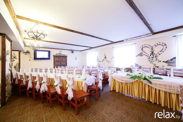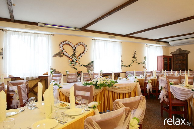 Мы с БМчиком решили все-таки съедить еще какое-нибудь кафе посмотреть. Поехали в "Лаванду" сначала. Расположение кафе нам не очень понравилось, т.к. совсем рядом трасса и оно как-то не совсем уютно получается, а вот зал очень даже симпатичный, НО  он уже занят на нашу дату. После этого поехали на базу ФПБ в Ратомке смотреть их ресторан. От МКАДа совсем не далеко, около 5 км. Понравилось, что у них своя отдельная территория. Зал очень просторный, достаточно светлый. По фоткам я как-то не могла понять, как у них там столы ставятся, но нам сказали, что на наше количество людей (а их 58 на данный момент) столы поставят буквой П с "разъезжающимися" ножками.  Во второй половине зала устроим танцпол. По сравнению с "У Гаспадыни" тут гости точно не будут друг другу на ноги наступать. Места хватит всем. Зал может вместить и 80-90 человек. А еще там есть балкончик, т.к. ресторан находится на втором этаже. Там летом стоят диванчики и можно небольшой фуршетик устроить для тех, кто вышел подышать свежим воздухом. Выходит, правда, дороже слегка. Примерная цена около 230-250 тыс/чел. + обслуживание 3$/чел. + работают они до 23.00, а за каждый час нужно еще 50$ доплачивать. Из своего можно овощную и мясную нарезку и спиртное. Короче, мы посмотрели, подумали и решили оставлять залог!! Так что банкет переносится в ресторан Базы ФПБ!!!