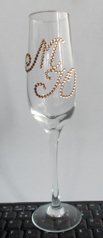 Оценивайте мой ХМ, вернее наш общий с БМ, помогал мне клеить стразы... Жаль фото не передает блеск и всю красоту((( Подскажите что добавить? Я думала бант на ножку в цвет свадьбы?