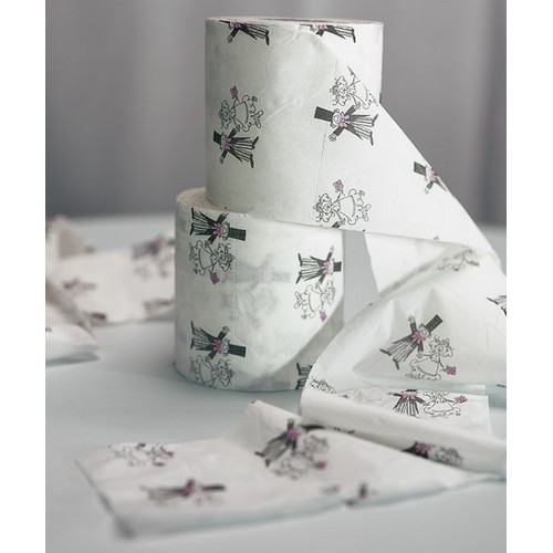 www-to4kaкстати в тему к салфеткам - за рубежом вот такую туалетную бумагу продают (наверное чтоб гость в любой момент мог вспомнить что все таки он на свадьбе  ) а у нас я не видела чтоб салфетки делали, но можно сделать свой логотип на самоклейке и ляпить куда душе угодно....мы вот на колокольчики будем (которые у нас вместо бонбонок)...