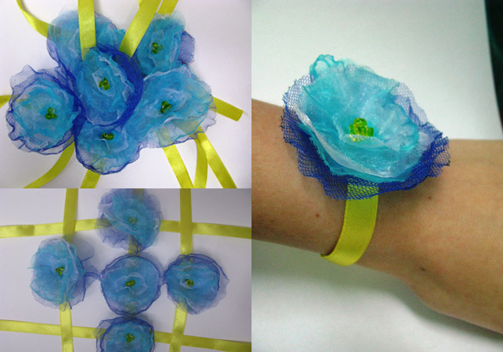 Веснушка_ все очень просто. делаешь цветочек из органзы (что-то вроде этого http://cvetichka.blogspot.com/2011/04/blog-post_04.html) потом пришиваем к ленточке и одновременно делая сердцевину из бисера.