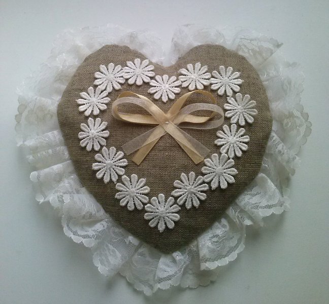 Девочки, вы меня озадачили))) Все-таки обсужу этот вопрос с администратором при следующей встрече. Но все-таки надеюсь, что свадьбы друг другу мешать не будут. Как правильно отметила spoila, залы находятся достаточно далеко друг от друга, и у каждого есть свои входы. А пока сброшу вам фото подушечки для колец. Наконец-то ее доделала  В центре бантика хочу еще жемчужинку приделать. Но это мелочи)) Очень хочется узнать ваше мнение. Только честно говорите))