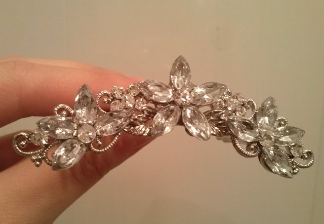 Девочки, совсем я от рук отбилась))) Балдела целый 2 недели, вообще свадьбой не занималась. Все, балдеж окончен, подготовочка продолжается! Ура, наконец-то созвонилась с кондитеорм. Как-то я благополучно призабыла, что так мы к ней и не подъехали. Договорились встретиться на неделе. Пока планируем заехать к ней во вторник. Ух, хоть бы планы не поменялись! Сегодня активно выбирала заколочку для прически, серьги и туфельки. Похоже, все это нашла))) Заколку уже купила. Огромное спасибо Настюше Анастасия stom, нашла то, что искала в Риге. Делюсь фото) Заколочка как раз такая по размеру, как я и искала. Ни маленькая, ни большая. Буду крепить ее сзади на гульке и за нее будет крепиться фата. Заколка была задачей №1, так как в следующую субботу у меня пробная прическа (Аааааааааа, очень-очень-очень жду и волнуюсь!!!!  ). Вложение: