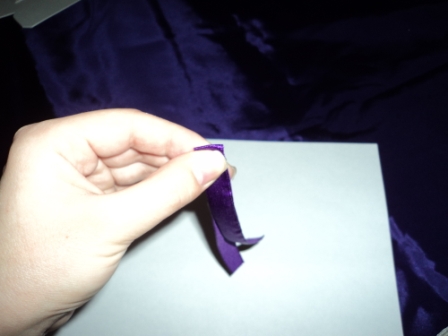 Берём тонкую ленту того же цвета, что и лента для банта.