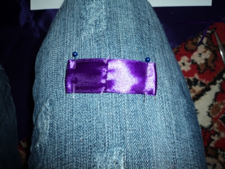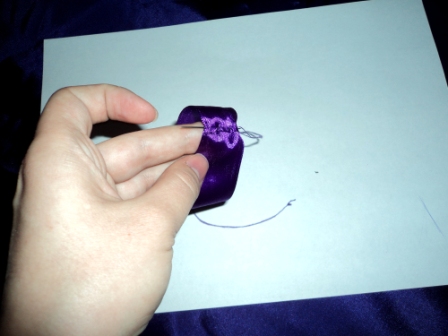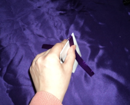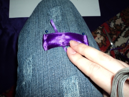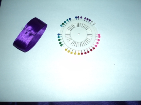 Для удобства лучше всего прикрепить бантовую ленту к какой-нибудь поверхности с помощью булавок.