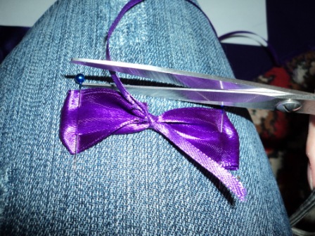 Здесь также лучше использовать "Момент кристалл", так как клей-момент (даже в мизерных количествах) оставляет белые пятна на ленте!Банты!Берём ленту нужного цвета. Отрезаем.