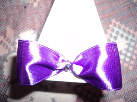 На бантик клеим стразик. Лучше маленький.
