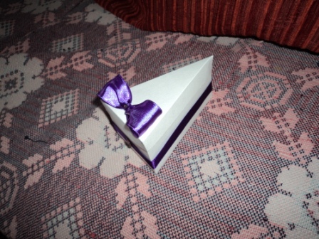 Лучше всего использовать клей ПВА с тонким горлышком. ПВА желтеет на поверхности. Поэтому необходимо, чтоб он не попал на внешние бока бонбона.Получаем коробочку.