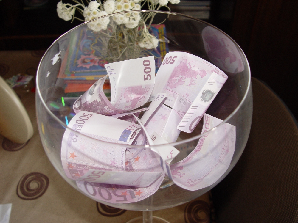 Для справки: "бокал" на литра 2 ))) я его украшу.. и он будет стоять на столике для дарения(который я тож сама украшу) ..куда будут все денюшки складывать))) 98.000 бел.руб"Рыбо моя" это чудо на батарейках..которая пускает пузыри))) 35.000 бел.рубСтолик для дарения..: парочку метров органзы..+ лента какая красивая..ии пару фонариков под стол(которых на работе валом)..а фонарики..т.к все эти провода не очень люблю..)))Мне кажется будет забавно.. А ещё немного не устраивает тортик в г-це Минск..т.к нет доставки.. иии мы заказали на пробу в пекарне Планеты.. во вторник расскажу как и чего))))+ в планете нам показали подставку ..такая красивая.. и + одной головной болью станет меньше(по доставке торта). Дали нам пробное меню.. и всё не так страшно максимум 200 тыс на человека.. Решили..т.к башмачки дарим не каждому..а паре..,то девушкам я буду дарить башмаки.. а жених будет мужчинам давать маленькую бутыльку водочки..(продолжая тему бокала))))
