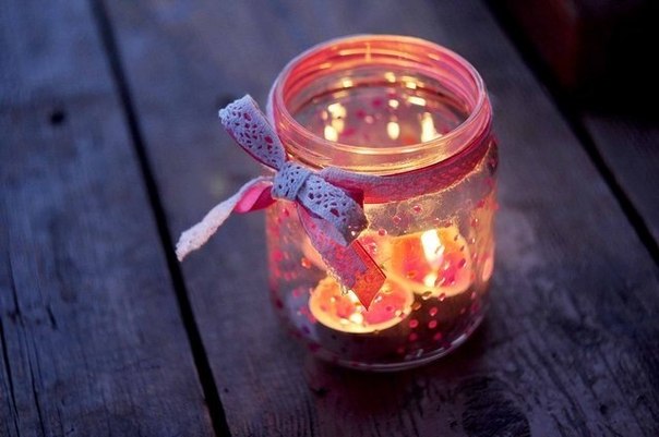 смотрите, что я состряпала.. баночку-подсвечник.. может на лав стори использую.. или так дома, для романтика  3 маленькие свечки или можно одну побольше))