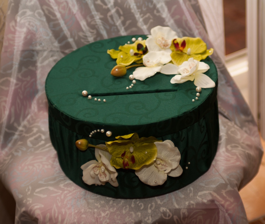 Квадратка, спасибо. Рада, что мои работы кого-то вдохновляют... значит они точно сделаны не зря :) Для коробки за основу брала обычную подарочную коробку, которые продаются в магазинах. Свою коробку покупала в магазине "Подарки", что на Я.Коласа. Там достаточно большой выбор и по расцветкам и по формам... Моя коробка в диаметре 30 см. Затем я прорезала выемку для денег. Брала довольно плотную ткань, тонким кусочком мыла рисовала "выкройку" , приложив крышку коробки(круг и прямоугольную полоску для боковой части крышки). Все части выкройки сшиваются, получившийся "чехол" одевается на крышку коробки и приклеивается, при этом края загибаются внутрь. Самое сложное - это аккуратно оформить выемку. Для нее я вырезала из кусочек ткани и пришивала его так, чтобы необработанные края ткани оставались спрятанными внутри... Нижнюю часть задрапировать легче всего. Просто берется ткань, вырезается круг (диаметр = диаметр нижней части коробки + 2 длины боковины коробки + нужное количество ткани, которая будет "прятаться" внутри). Все крепила с помощью клеевого пистолета. Надеюсь, объяснила более-менее доступно :) Если что, спрашивай?