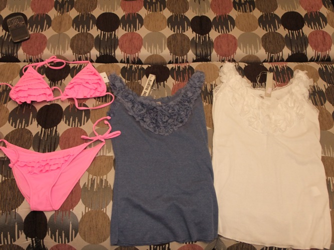 а себе я прикупила пару кофточек и купальник - нежно розового цвета  (никогда не думала, что куплю такого цвета себе. но одела и влюбилась)))
