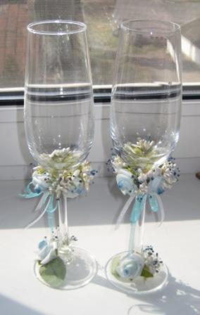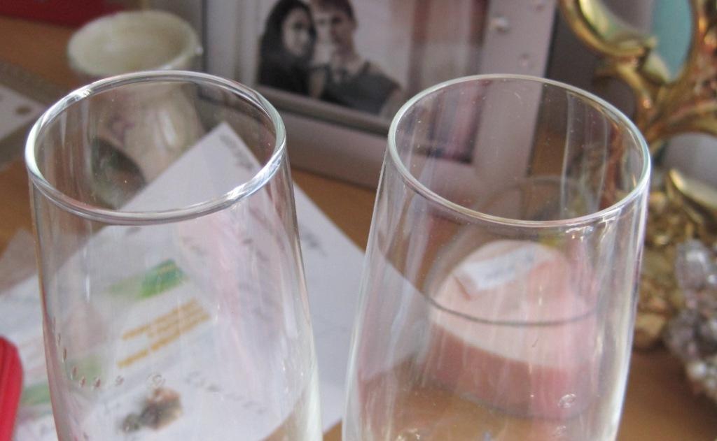Уффф, забрали бокалы сегодня. Делали в Аркуше. Нам так понравилась тамошняя хозяйка. Так все мастерски делает. Перехвалили мы ее... Меня устраивало все кроме их бокалов из толстого стекла. По мне они дешево смотрятся. Мы поехали купили свои и отвезли ей. А они так похожи на те, что у нее, только стекло ровное и тонкое. Мы оставили ей на две недели, тк не было голубых роз в наличии. И что вы думаете, приехали забирать бокалы. Она нам подает а они разные! Один наш, благородного вида а второй убогий из толстого стекла. Ну издалека не заметно но все же. Я немного расстроена тем более что она сказала "подумаешь ерунда какая" и сделала скидку 5 рублей. А дома я заметила что они и по высоте разные. Вот как это назвать???