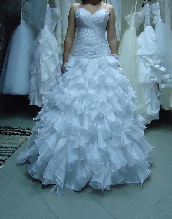Лёлик, действительно, в первом высоковаты чашки, а в общем, очень даже неплохо. Во втором юбка смущает, какая-то она странноватая. Платье с такой пышной юбкой, как у третьего, немного полнит. В четвертом очень нравится качество ткани на воланах и то, как они лежат. Но вот корсет подкачал. В пятом вырез по груди прямой, смотрится не очень, да и юбка не впечатляет. Итого: платье с заниженной талией, вырезом сердечком и воланы, как на четвертом либо на первом варианте - твой идеальный вариант  ИМХО И еще вопрос: а почему ты не меряешь другие модели - рыбку, А-силуэт, принцессу? Очень хотелось бы их на тебе увидеть и оценить. Вдруг тебе и воланы перехочется, когда ты наденешь какое-то другое платье?