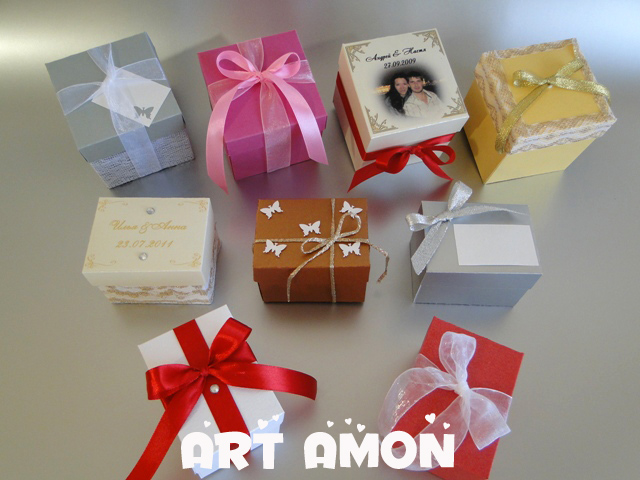 А что придумывать? Лентой перевяжи коробочку и самый обычный бантик. На картинках простые