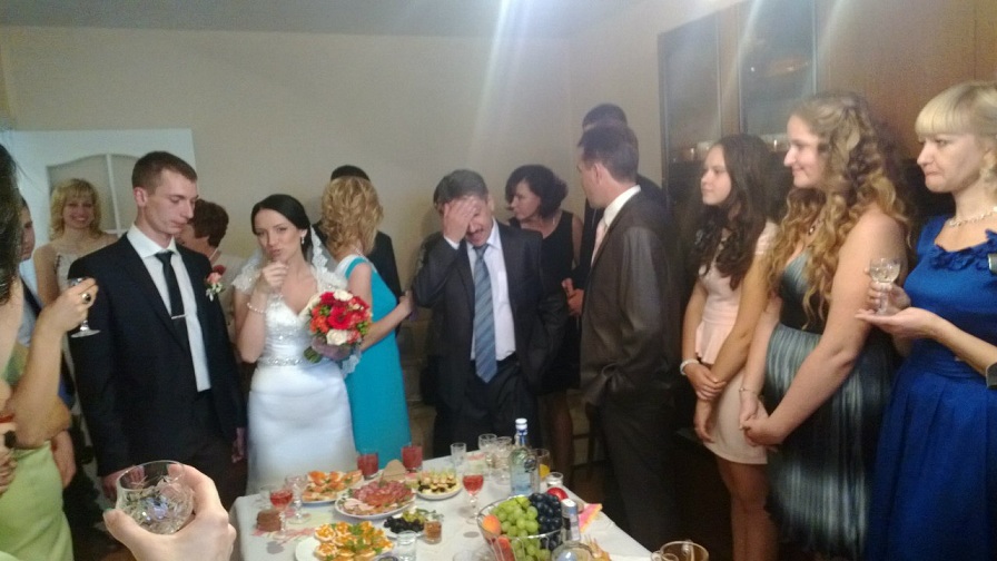 Началось одевание невесты(меня)…. Так волнительно было…. Девочки прям расплакались, от того какая я красавица)))) и вот я вышла к зеркалу…. Я себя не узнала совсем… Какая я была красивая!!!! Никогда не забуду, то чувство перед зеркалом Я невеста… и через пару часов буду женой…. Начали приезжать родственники, все говорили какая я красивая ,замечательная… и тут папа решил открыть шампанское у меня в комнате….. видимо его взболтали….. но как только раздался хлопок полкомнаты залило шампанским!!!! В том числе мою мамочку и подружку невесты…. Подружка восприняла спокойно и пошла в ванную…. А вот мамулю пришлось успокаивать, она так расстроилась, прям расплакалась, а мне её было так жалко,что чуть сама слезу не пустила…. Но благо была мамина подруга рядом, она нас обоих успокоила))) мамочка вместе с ней пошли сушить платье, пятен даже не осталось…..