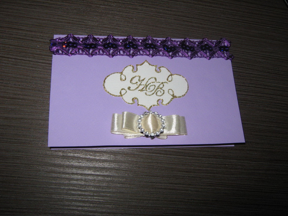 мне сразу как-то больше первый бантик понравился, но на пригласительном лучше смотрится второй. лаконичнее, поддерживается горизонталь, заданная сверху полоской кружева.