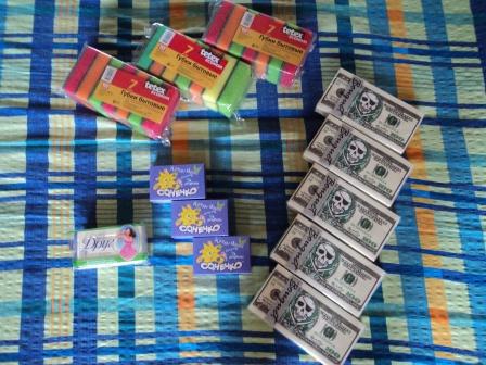 - подарки на конкурсы 3 фиолетовеньких мыльца, набор губок для посуды, мыло "Друг", 5 салфеток с черепом. Всё будет обыграно с ведущим с ржачными комментариями к каждому призу Вложение: