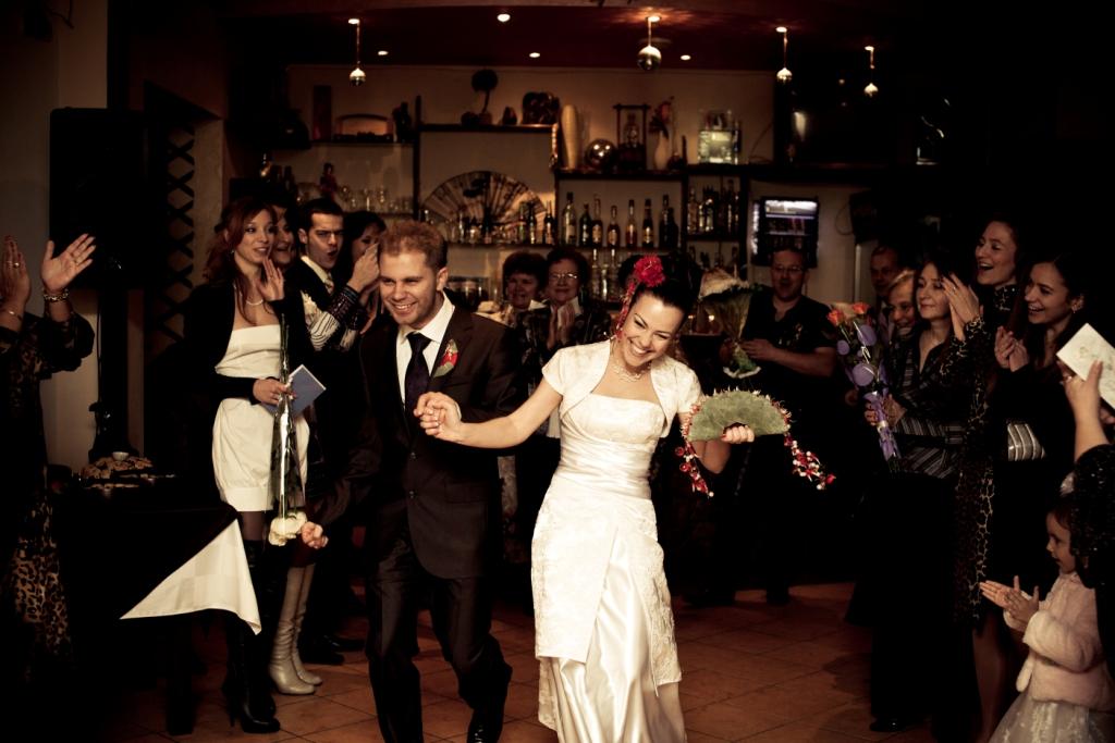 Часть четвёртая - банкетнаяКогда приехали к кафе, нас вышли встречать все гости и родители с хлебом-солью. Встречали громкими аплодисментами, но мы повыпендривались, делая вид, что не слышим. Но все-таки решили появиться ) Отламывая каравай, я отколупнула одну буковку, а любимый с голодухи отломал ломоть и сразу начал его точить  Ведущий его вовремя остановил )))) Дальше была соль............... Любимка смекнул к чему все идет и таааааааак добротно свой кусок в соль выкачал..................... Кароче там все офигели и разрешили мне не есть, а выплюнуть втихаря кусок. Сам вечер прошёл на одном дыхании.... С танцем вообще караул вышел. Буся моя не только забыла некоторые движения, он даже ВЫЙТИ на него забыл  Но всем вроде как понравилось. Свидетельница снова плакала на нём. Сами конкурсы были просто до колик в животе Я так никогда не смеялась! ))) Очень трогательно прошел момент передачи домашнего очага - помимо самого момента ведущий говорил тааааакие слова, что за душу брало (некоторые и тут плакали). Ведущий прочёл в нашу честь умопомрачительное стихотворение вначале вечера. И до конца оговаривал с нами все моменты. За что ему огромное спасибо! Меня сперли ещё в самом начале вечера. И так долго ждали, пока жених со свидетелем зале появятся, что уже хотели идти в зал за бутылкой (закуси вокруг нас хватало) и один из поваров достал карты  По поводу торта мы не заморачивались, но его смели моментом. Был ещё один неприятный момент в кафе - подали недожаренное мясо. Но мама с этим быстро разобралась, поставила всех на место и нам все переделали. Но я не обращала на все это внимания. Я не знаю, были ещё какие-то косяки или нет, я просто не видела их и не искала. Я отрывалась по полной на своём празднике любви! И мне было фиолетово на все! Любимка до жути жадничал и не хотел отдавать никому мою подвязку. ) В конце вечера мы сказали слова благодарности родителя, остям и незаменимой Леночке! И продолжили отрываться дальше )