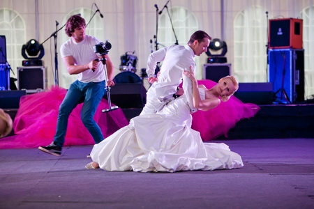 Мысли о маленькой свадьбе никогда не приходили мне в голову! Я мечтала о размахе и масштабе! Я всегда любила и люблю большие свадьбы, свадьбы с идеей и серьезными действиями, чтобы были артисты, много действий и событий! И таким я видела и свой праздник! Конечно же не пришлось долго мучиться и выбирать)))) Я просто взяла все лучшее из свадебного рынка(на мой взгляд и вкус)! Был проделан колоссальный труд по подготовке, было очень много всего! Подготовка шатра-это отдельная и долгая тема! Полный декор тканью потолка и стен, изготовление бумажных цветов к каком-то бешеном количестве))))) Также стелился ковер, устанавливался звук и свет (по периметру шатра была сделана световая заливка), привозились столы и стулья, еще были приставные столы для алкоголя, т.к. обслуживание было в разлив. Регистрация.....всегда хотела, чтобы гости сидели, мне нравится такая картинка, и все видно и снимать удобно. Видео съемка велась в 3 камеры (одна из которых была на съемочном кране- полный эффект полета) .Что касается банкета, программа строилась так, чтобы всегда что то происходило, но не превращалось в концерт. Было время и на поздравления, и на «горько», и на танцы , и на артистов. На банкете была насыщенная развлекательная программа. Нас приехали поздравить Галина Шишкова, Елена Гришанова, Иван Буслай, цыганский коллектив «Аллюр», шоу-балет «Феерия», восточная красавица Ясмин, кавер-бенд No-Comment Band, мои любимые мимы «Балбесы». Ну и особым сюрпризом стал наш танец. Он был долгий, эффектный, со сложными поддержками и при участии танцоров. Под песню The Time of my Life , из фильма Грязные танцы.
