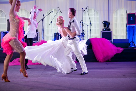 Банкет….18.00 идем ровно по времени! Входим в шатер, все гости сидят за круглыми столами! Все так красиво))) Цветы на потолке шикарны, весь зал подсвечен!Эх, хорошо….  Садимся, официанты предлагают алкоголь, но мы же не пьем, у нас еще танец……снова вспомнила про танец и снова стало страшно.  Первое застолье Виталик и Артем все время что то говорили, шутили, выступала Ясмин- танец по теме, в павлиньем костюме с веерами, подавали горячее, ну эти 40 минут пролетели быстро….перерыв начался с появления мима, а мы ушли переодеваться. Вот он, час Х!!!! 30 минут фоновой музыки, гости гуляют, а мы , впервые в платье повторяем танец! Если бы не Леша и его уверенное «держание» меня», ничего бы не вышло! При каждом повороте платье кружилось и заносило меня, а повороты быстрые, всякие прогибы, крутелки какие-то, мне кажется, что у меня даже руки тряслись. Девочки из Феерии переоделись, дали мне плащ, и Диана помчалась в шатер, говорить, что мы готовы…..А я не готова, мне страшно, у меня в голове только- считай про себя, и смотри на него, и улыбайся!!!! Танец начинался с выхода нас троих в фуксийных плащах, со слов гостей, не все и не сразу поняли, что там была я, к тому же нас объявили, как шоу-балет Феерия. И вот мы идем с девочками, что-то еще говорим, я вижу, что все 100чел. встают из-за столов, начинают хлопать, свет по залу меняется, и…..понеслась)  Ничего не помню, все на одном дыхании, 6 мин. танца промчались, и наконец-то все закончилось…..можно выдохнуть, и можно пить!!!! УРА!!!!! В этой части застолья были танец от Феерии, снова перья, и приехали все , кто пел для нас- Елена ,Гришанова, Иван Буслай, Галина Шишкова. Танцы, отрыв, фото, поздравления, все смешалось в единую гармонию, ведущие рвали зал, жгли по полной! Дальше были еще номера от танцоров, цыгане, на перерывах играли каверы. Тык мы приблизились к полуночи…..и вот он торт) 120см в высоту, 17 кг, 6 ярусов и сверху павлин))) торт был просто гениален, я была в восторге! Конечно мы сняли верхушку с птичкой, дальше работа официантов. И все- мы снова убегаем переодеваться. Третий наш выход был фееричен! Наши наряды удивили всех)))))))))))))))) Так мы бросили букет, подвязку, еще был танцевальный батл от Димы Кохно! Он был гостем, но не удержался от мини-работы) Вообще, иногда казалось, что у нас 3 ведущих! И вот…..финал, почти финал) Большая часть гостей уехала, но а мы остались…до 4 утра мы гуляли. Это было круто, эмоции били через край, и как мы столько выдержали, сама не знаю. Было классно))))