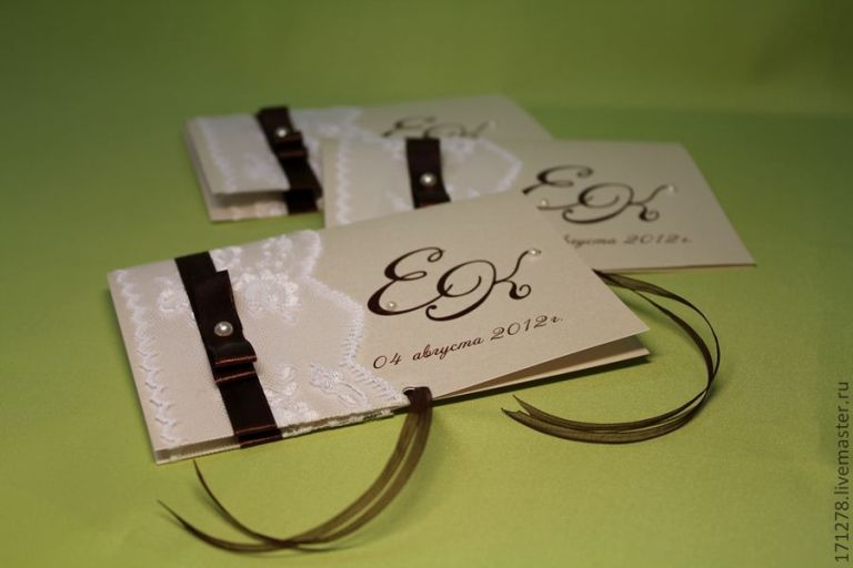 хотя мне самой нравятся такого плана, чтобы было много всячины в конверте) можно ведь просто распечатать на красивой бумаге и сложить,перевязав красиво,карточку с датой, текст приглоса, карту проезда, план банкеты или еще чего..